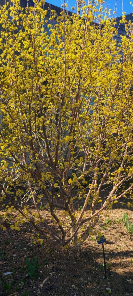 Now we move from shrubs into small tree territory, and Cornus mas is where things get exciting. Cornelian Cherry is one of the earliest woody plants to bloom in the Mid-Atlantic region, often opening its flowers in early to mid-March — a full two weeks before Forsythia even thinks about waking up. The blooms are dense clusters of tiny, bright yellow flowers that stud the bare branches, creating a golden haze that is every bit as eye-catching as Forsythia but with considerably more sophistication.