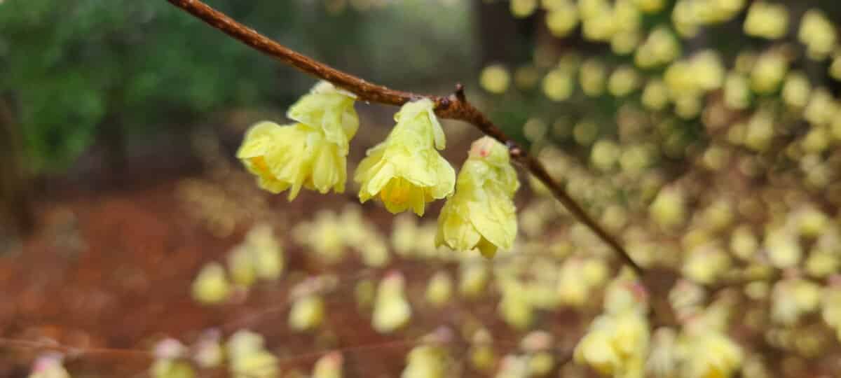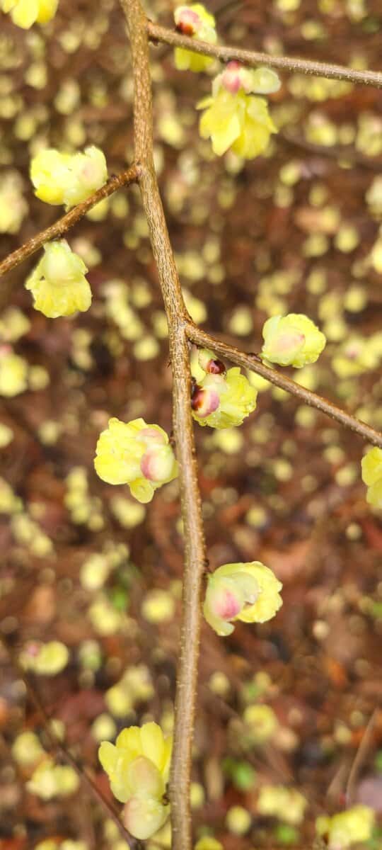 A Winterhazel with a small stature and an appropriate common name of Buttercup. If C. spicata is the quiet conversationalist of the group, then C. pauciflora is the whisper. This is the smallest of the Winter Hazels I am highlighting here, topping out at around four to six feet tall and wide. It is a delicate plant in the best sense of the word — fine-textured branches, dainty leaves, and flowers that appear in clusters of just two or three blooms per raceme. In fact, the species epithet pauciflora literally translates to “few-flowered,” and the botanists were not exaggerating.
