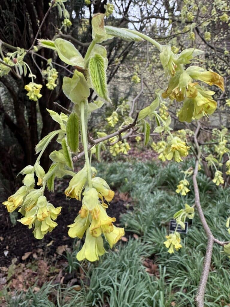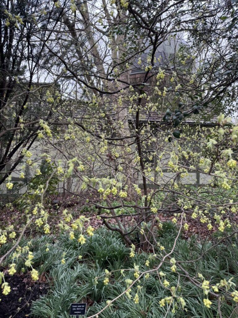 Once again though, I must recommend a superior cultivar to the straight species. Some plant nerds noticed an improved version of C. glabrescens during a 1995 plant trial at Longwood Gardens and aptly named it ‘Longwood Chimes’. This cultivar packs an even more intense aroma and an inflorescence that is typically 50% larger. To add to this, the Fragrant Winter Hazel ‘Longwood Chimes’ blooms longer and about one to two weeks later, ensuring any late frosts do not compromise the flowers. However, I took a peak at both the cultivar and the straight species on April 2nd, 2026 and although C. glabrescens flowers were fading, they both were still putting on a show at the Scott Arboretum in Swarthmore, PA.